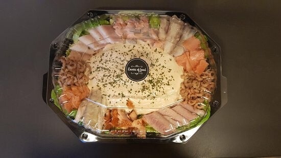 Cateringschaal onverdeeld die veel wordt gebruikt voor gourmet vlees, fondue vlees, borrelhapjes en tapas. Met transparante deksel. Herbruikbaar!